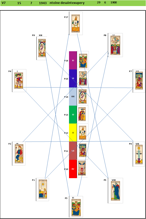 Saint Exupéry a un Ermite (arcane VIIII) en Trajectoire et le Monde (arcane XXI) en Poste 14 ce qui nous donne 30 donc III l’Impératrice.